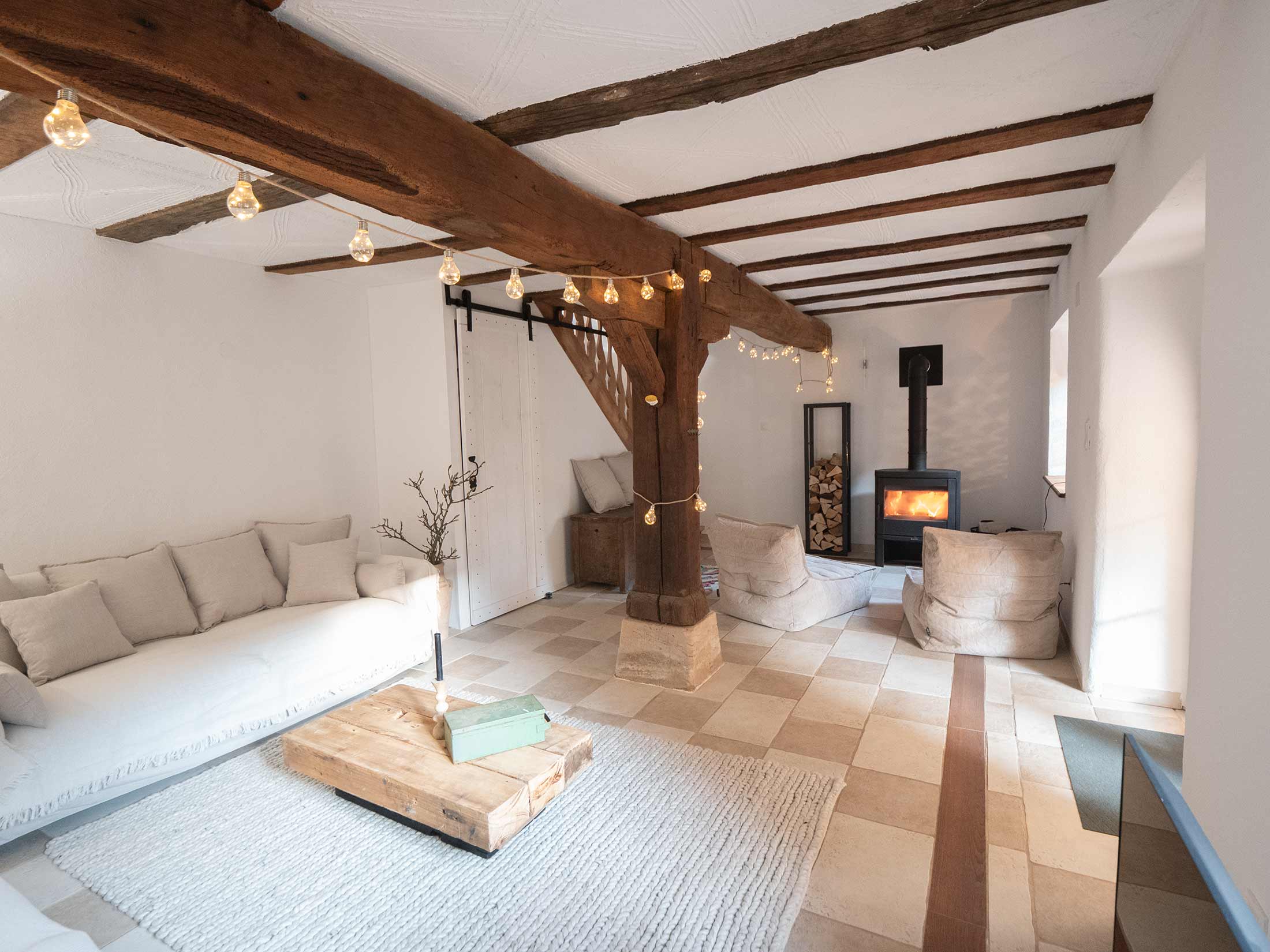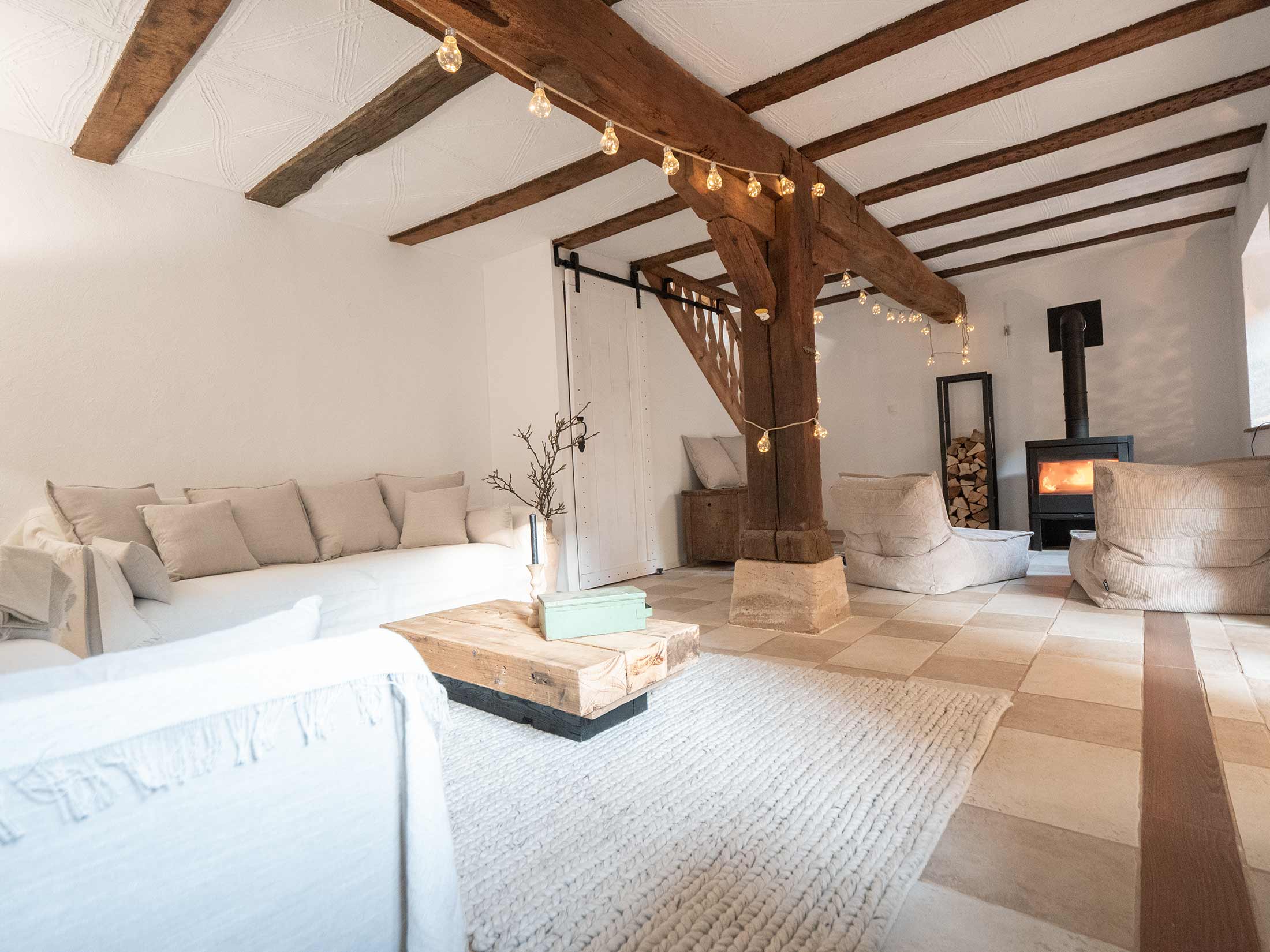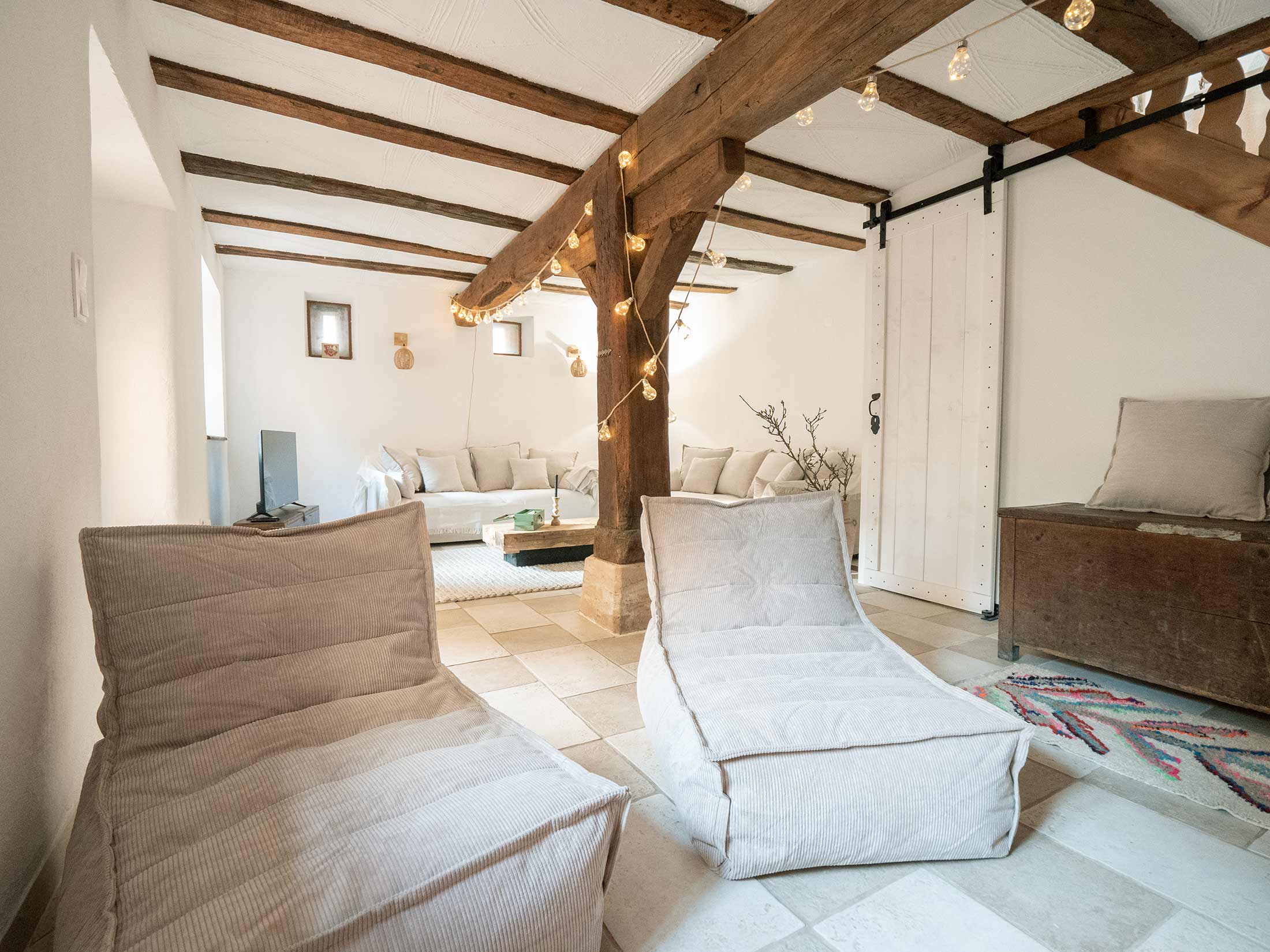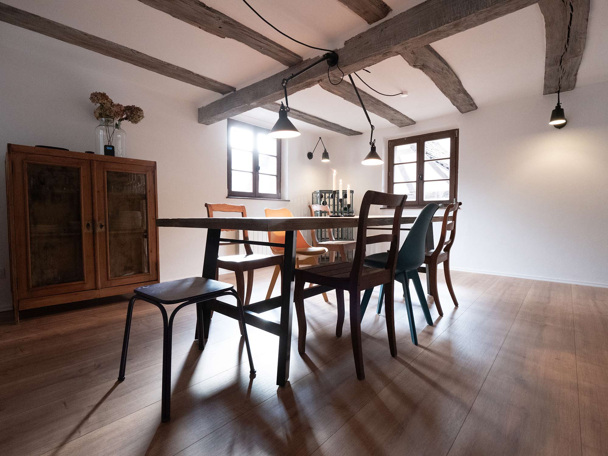 Der Essbereich ist mit einem 2,80 m langen Tisch ausgestattet, an dem acht Personen komfortabel Platz finden. Für ein Wein-Tasting steht ein mit ausgewählten Weinen bestücktes Weinregal zur Verfügung (Infos zum Wein-Tasting finden Sie hier). Ergänzt wird der Essbereich durch gemütliche Sitzkissen, die zum Entspannen und Verweilen einladen.